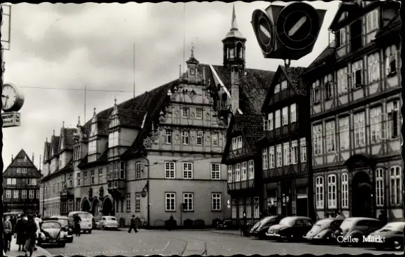 Ak Celle in Niedersachsen, Markt, Fachwerkhäuser, Giebel