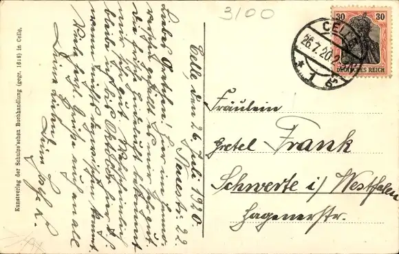 Zustand, siehe Scan, gelaufen, 1920 - ca 14 cm X 9 cm