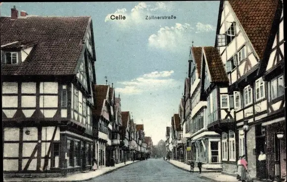 Ak Celle in Niedersachsen, Partie in der Zöllnerstraße, Fachwerkhäuser