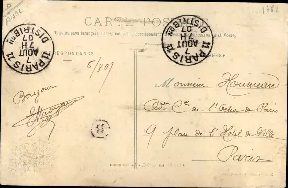 gelaufen 1907, Leim gelöst, Stempelspur, sonst guter Zustand