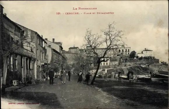 Ak Cerbère Pyrénées Orientales, Place et Debarcadere