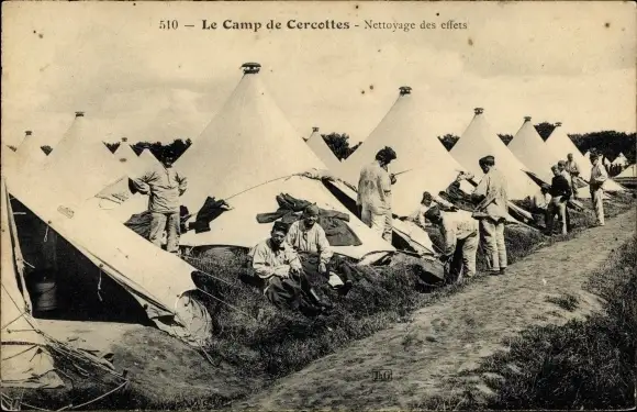 Ak Cercottes Loiret, Le Camp de Cercottes, Nettoyage des effets, Soldaten, Zelte