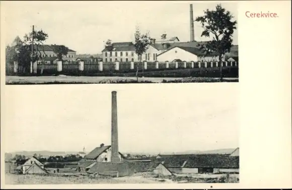 Ak Cerekvice nad Bystřicí Region Königgrätz, Gesamtansicht, Schornstein, Häuser