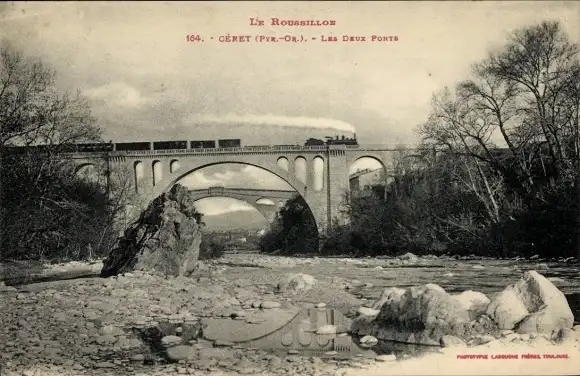 Ak Céret Pyrénées Orientales, Brücken Eisenbahn