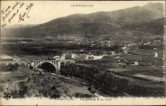 Ak Céret Pyrénées Orientales, Vue générale et les Ponts
