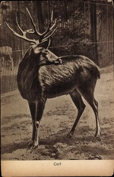 Ak Cerf, Tierportrait, Hirsch im Gehege