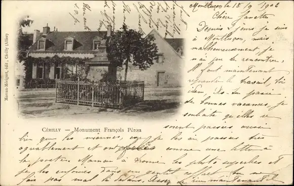 Ak Cérilly Allier, Monument Francois Peron