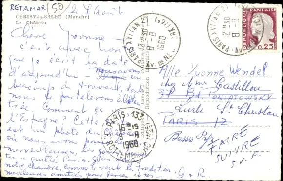 Zustand, siehe Scan, gelaufen, 1960 - ca 14 cm X 9 cm