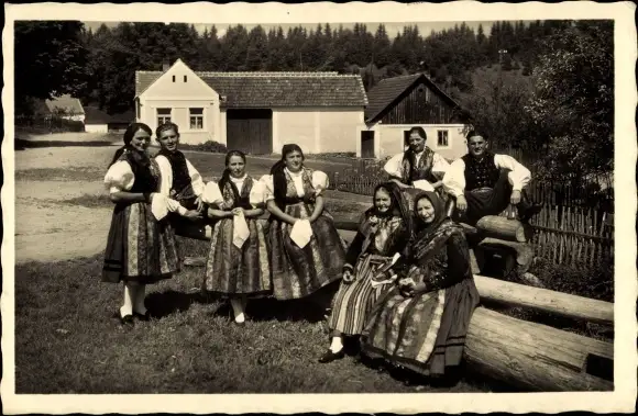 Ak Ceske narodni kroje, Frauen in tschechischen Trachten, Doudleby u Ces. Budejovic