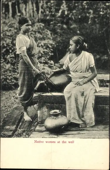 Ak Ceylon, Einheimische Frauen am Brunnen