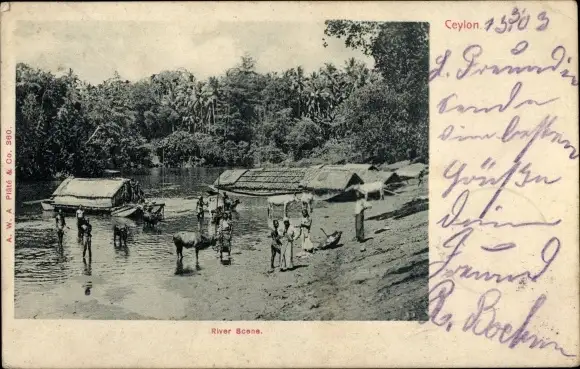 Ak Ceylon Sri Lanka, Flussszene