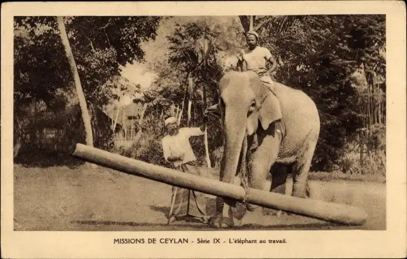 Ak Ceylon Sri Lanka, Missions de Ceylan, L'elephant au travail
