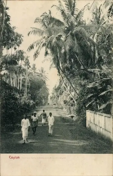 Ak Ceylon Sri Lanka, Straßenpartie, Palmen