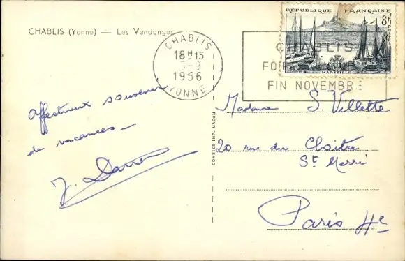 Ak Chablis Yonne, Personen bei der Weinlese