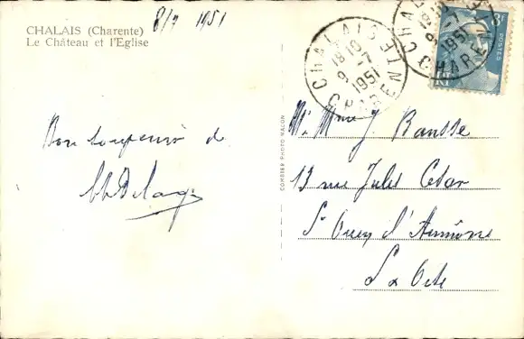 Zustand, siehe Scan, gelaufen, 1951 - ca 14 cm X 9 cm