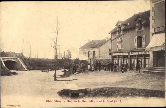 Ak Chalindrey Haute Marne, Rue de la République et le Pont