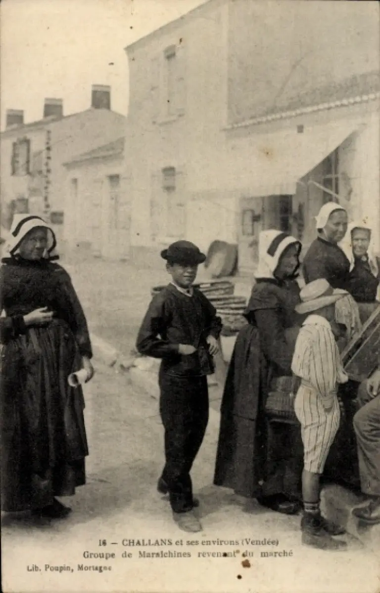 Ak Challans Vendée, Groupe de Maraichines revenant du marché