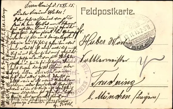 Zustand, siehe Scan, gelaufen, 1915 - ca 14 cm X 9 cm