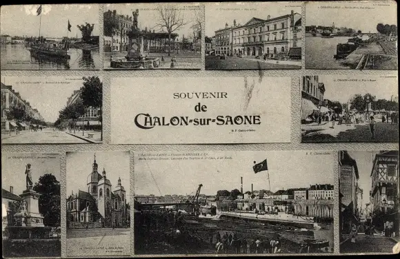 Ak Chalon sur Saône Saône et Loire, Eglise, Monument, Place, Miniaturansichten