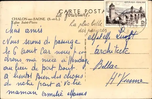 Zustand, siehe Scan, gelaufen, 1956 - ca 9 cm X 14 cm