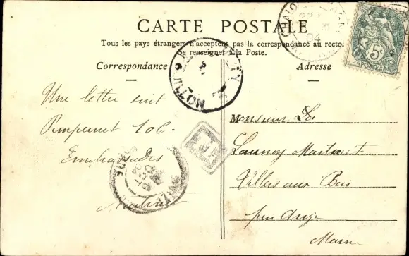 Zustand, siehe Scan, gelaufen, 1904 - ca 14 cm X 9 cm