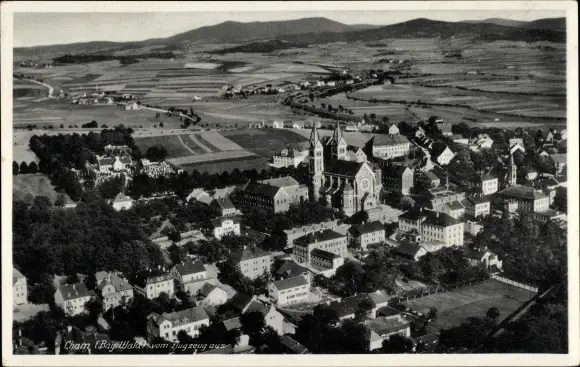 Ak Cham in der Oberpfalz, Ortsansicht, Flugzeugaufnahme