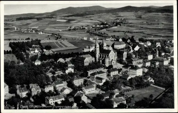 Ak Cham in der Oberpfalz, Ortsansicht, Flugzeugaufnahme