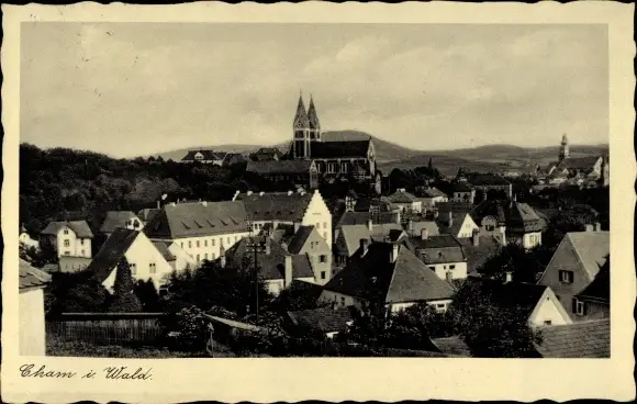 Ak Cham in der Oberpfalz, Ortsansicht, Kirche
