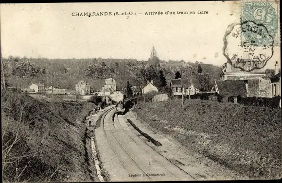 Ak Chamarande Essonne, Gare, arrivée d'un train