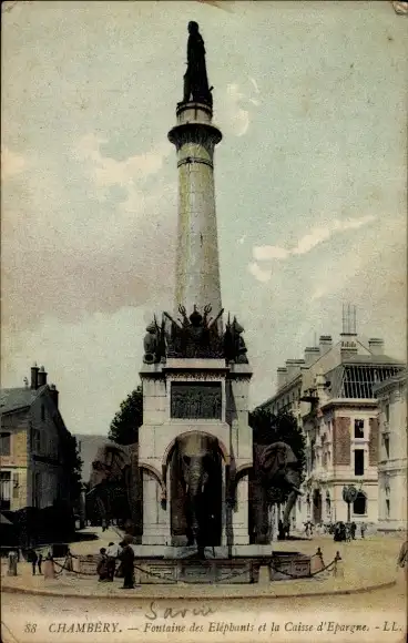 Ak Chambéry Savoie, Fontaine des Elephants, la Caisse d'Epargne