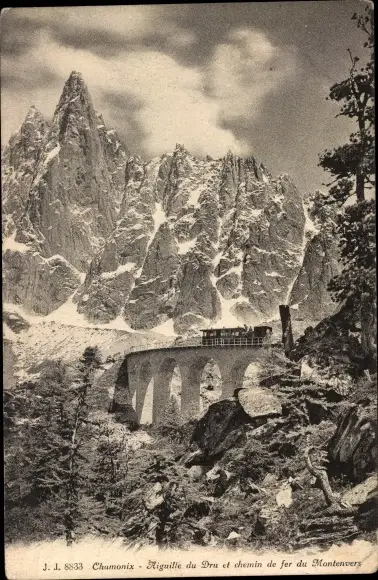 Ak Chamonix Mont Blanc Haute Savoie, Aiguille du Dru et chemin de fer du Montenvers