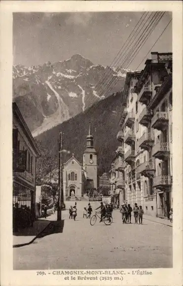 Ak Chamonix Mont Blanc Haute Savoie, Eglise, Brevent
