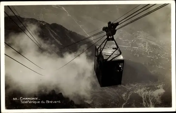 Ak Chamonix Mont Blanc Haute Savoie, Téléférique du Brévent, Partie mit der Seilbahn