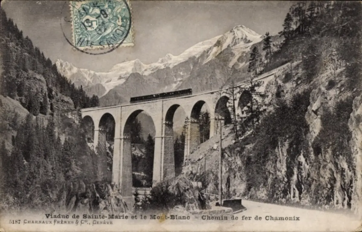 Ak Chamonix Mont Blanc Haute Savoie, Viaduc de Sainte-Marie, Mont-Blanc, Chemin de fer de Chamonix