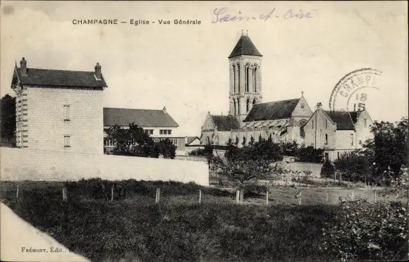 Ak Champagne sur Oise Val d´Oise, Eglise, Vue generale