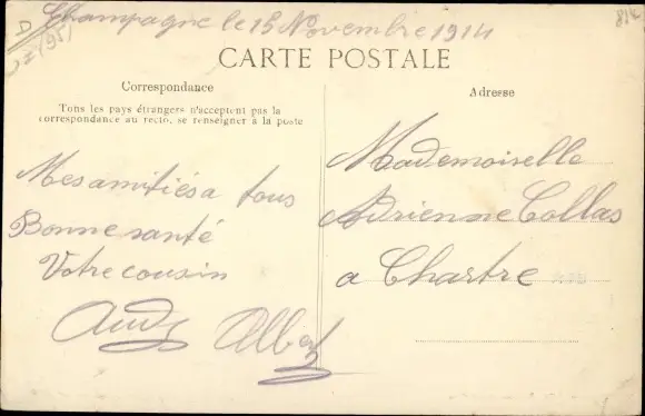 ungelaufen, datiert 1914, Rückseite beschrieben, sehr guter Zustand
