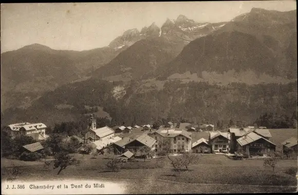 Ak Champéry Kanton Wallis, Ortsansicht mit Dent du Midi
