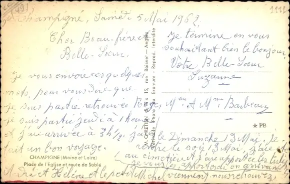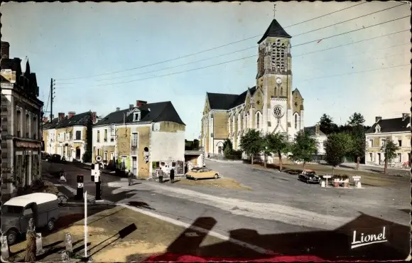 Ak Champigné Maine-et-Loire, Place de l'Eglise et route de Sable