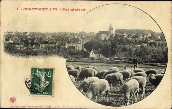 Ak Champignelles Yonne, Vue generale, Schafherde