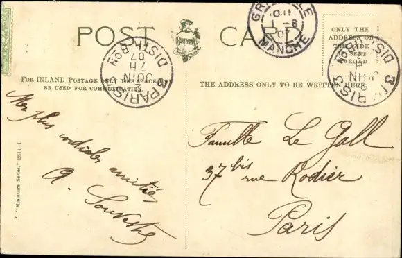 Zustand siehe Scan, gelaufen, 1907 - ca 9 cm X 14 cm