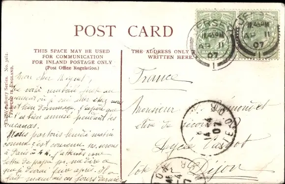 Zustand, siehe Scan, gelaufen, 1907 - ca 14 cm X 9 cm