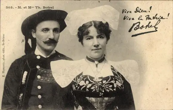 Ak Chansonnier Theodore Botrel, Ehefrau, Trachten