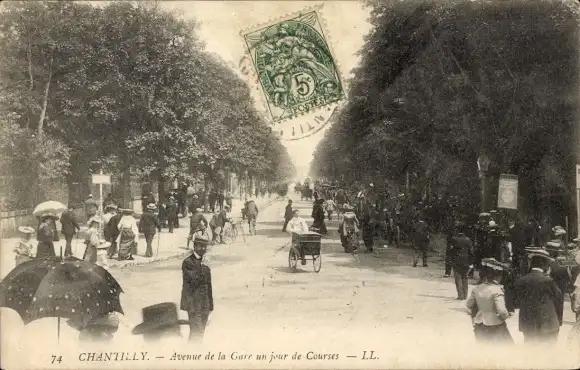 Ak Chantilly Oise, Avenue de la Gare un jour de Courses