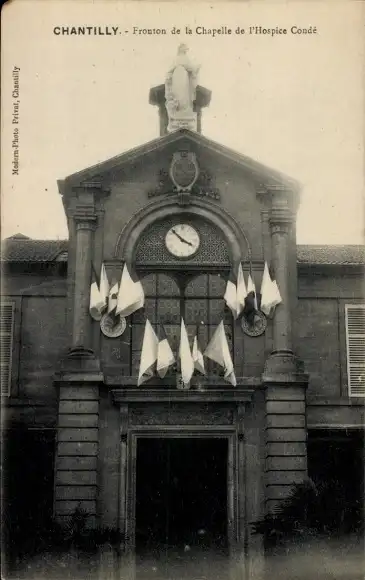 Ak Chantilly Oise, Fronton de la Chapelle de l'Hospice Conde