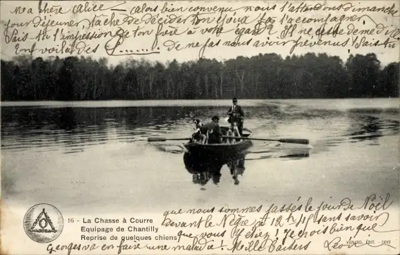 Ak Chantilly Oise, La Chasse a Courre, Equipage, Reprise de quelques chiens