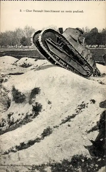 Ak Char Renault franchissant un ravin profond, Französischer Panzer