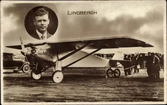 Ak Charles Lindbergh, Pilot, Flugzeug, Flugpionier