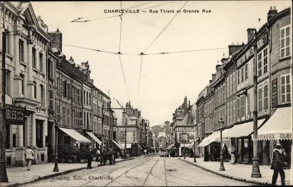 Ak Charleville Mézières Ardennes, Rue Thiers und Grande Rue