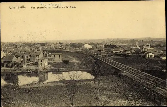 Ak Charleville Mézières Ardennes, Vue générale du quartier de la Gare