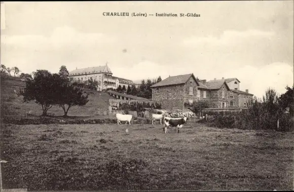 Ak Charlieu Loire, Institution St. Gildas, Kühe